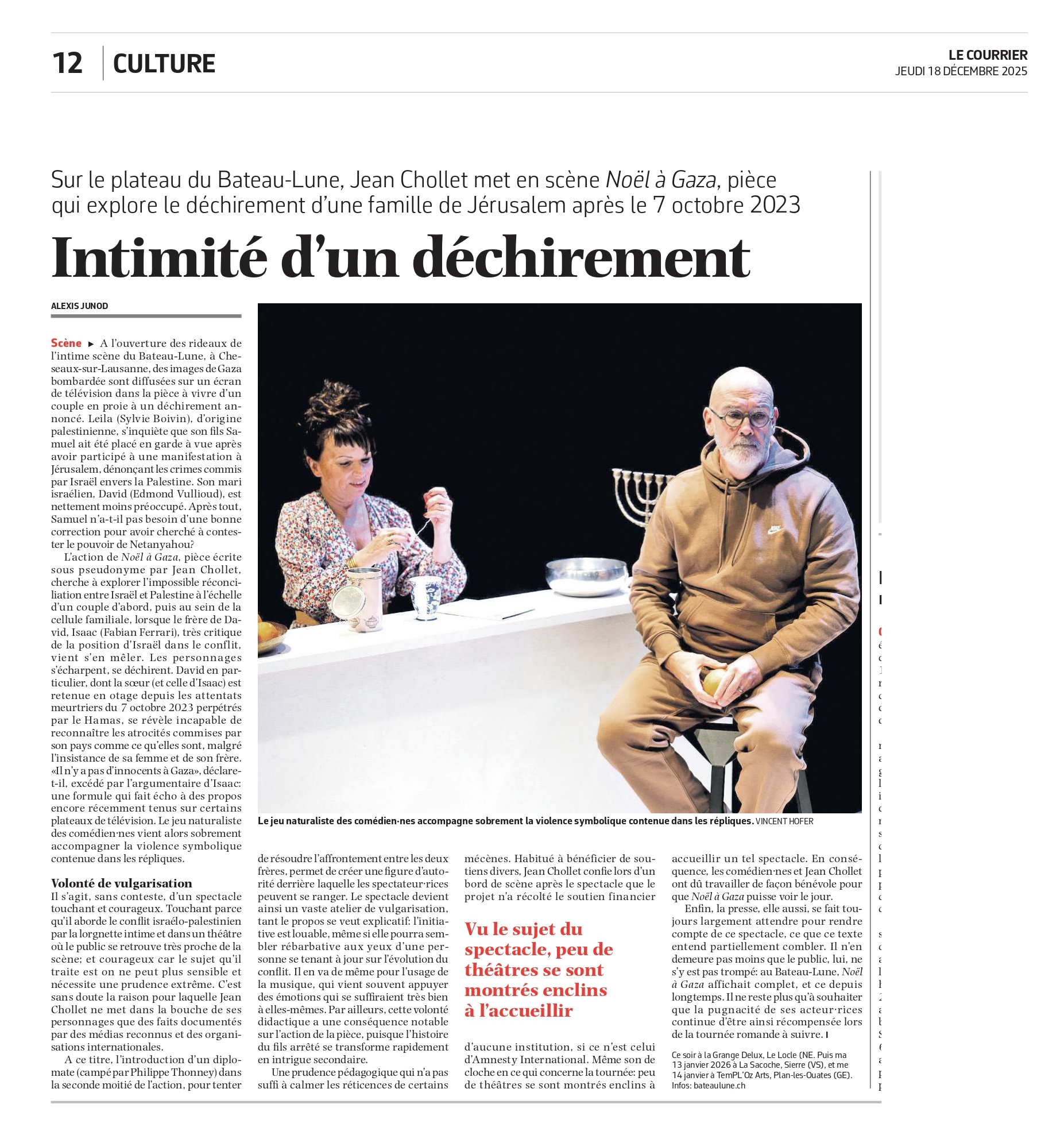 L’invité – Jean Chollet & Edmond Vuillioud pour Noël à Gaza